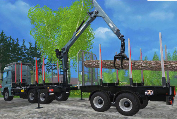 《模拟农场15》木材拖车MOD,在原拖车基础上增加一个拖车,能拉很多。