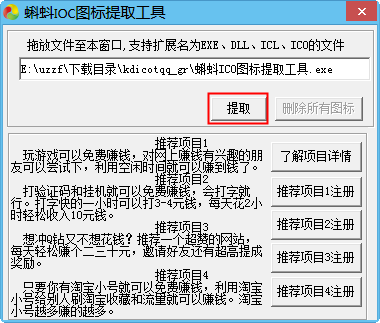 1、打开软件后,吧要提取图标的文件拖入软件中,点击【提取】按钮即可提取。