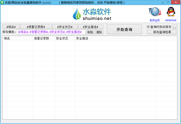 水淼网站安全批量查询助手是一个绿色的网站安全批量查询工具,可以查询并导出网站安全状态、安全描述等信息。