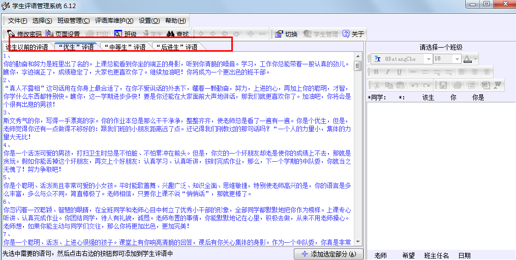 3.评语支持排版功能,可以实现Word的部分功能,但已够用;