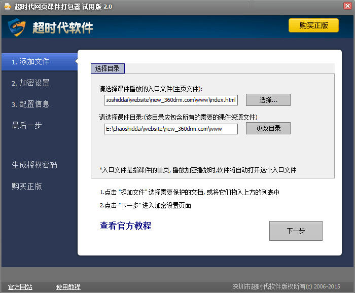 课件目录,即所有网页以及资源文件(图片,声音等素材)所在的目录,软件将统一将这些内容打包起来。