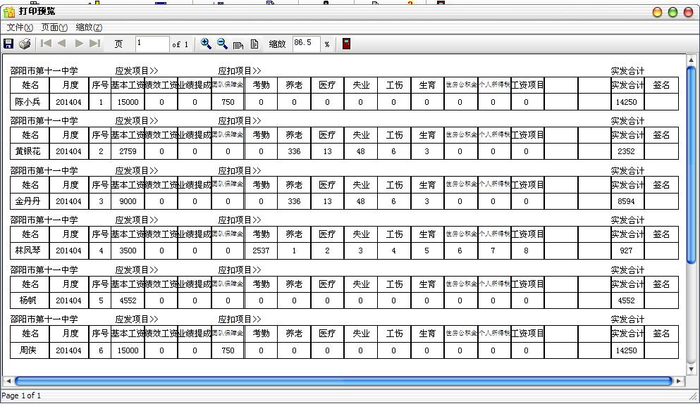 点界面底部功能按钮:打印明细(工资)表,可列表打印工资表。