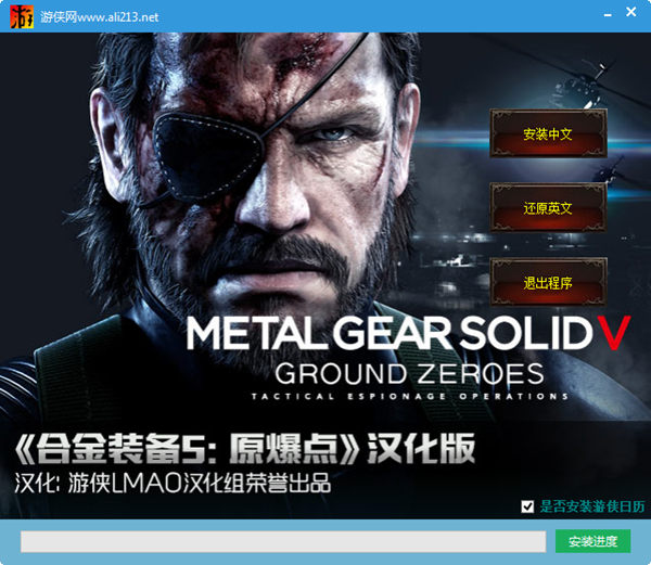 合金装备5游侠汉化补丁是游侠LMAO汉化组制作的《合金装备5:原爆点》游戏汉化补丁,安装之后可以将英文版游戏汉化成简体中文版,让国内玩家都能够轻松看懂游戏内容,方便国内玩家更愉快的游戏。