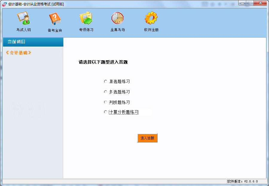 2015会计从业资格会计基础考试系统软件主要功能介绍: