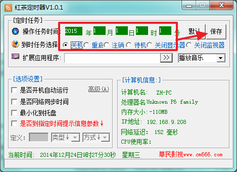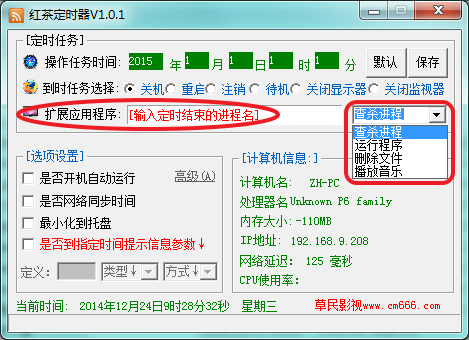 红茶定时器是一款绿色简单的定时关机工具。该软件能设定到年、月、日、时、分,进行关机、重启、注销、关闭显示器等操作,同时还集成了应用程序扩展,定时关闭或开启应用程序、定时删除、播放音乐等,欢迎有需要的用户下载使用!