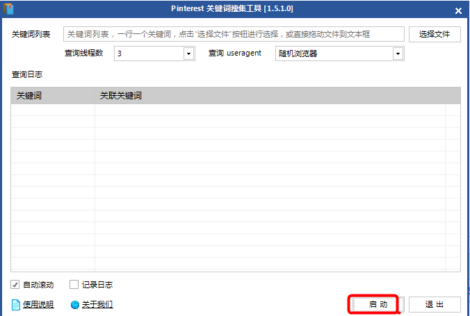 1、新建一个文本文件,一行一个关键词,在软件界面中选择这个文件或直接把文件拖到表单里,点“启动”即可。