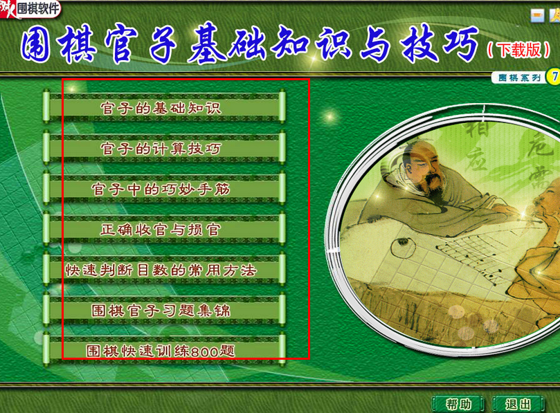 围棋是一项非常有益的活动,学围棋有助于培养专心致志、善于思考的好习惯,可以最大限度地开发智力,启迪思维,锻炼头脑,陶冶情操。在围棋的对弈中,包含着形象思维、逻辑思维的创作。它能增强机械记忆和理解记忆,能提高人们的计算本领。针对围棋爱好者的学习热情,公司推出围棋学习软件全能版,其中包含八个围棋软件:关键一手棋36讲、世界围棋死活精典名著、围棋官子基础知识与技巧、围棋经典五合一上、围棋经典五合一下、围棋死活与手筋2500题、新围棋猜局3000局、围棋段位测试2000题。