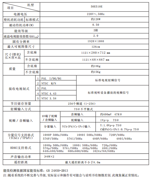 创维50e510e参数