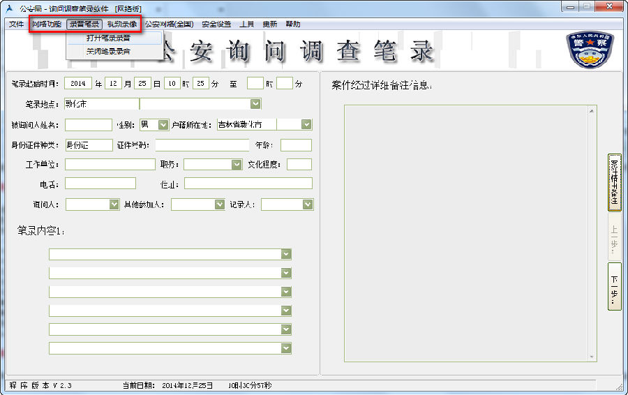 公安询问调查笔录软件使用介绍: