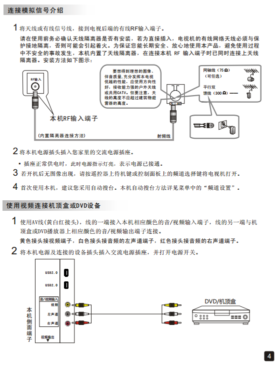 电视基本功能、电视产品特性提示、开机与关机……………………………… 7
