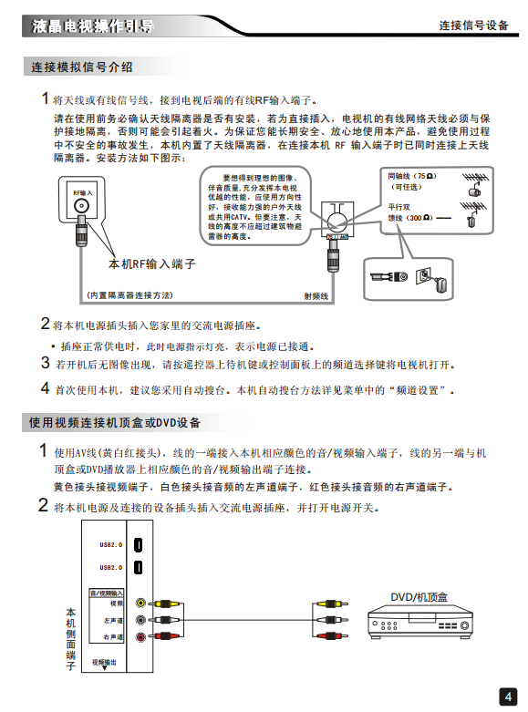 电视基本功能、电视产品特性提示、开机与关机……………………………… 7