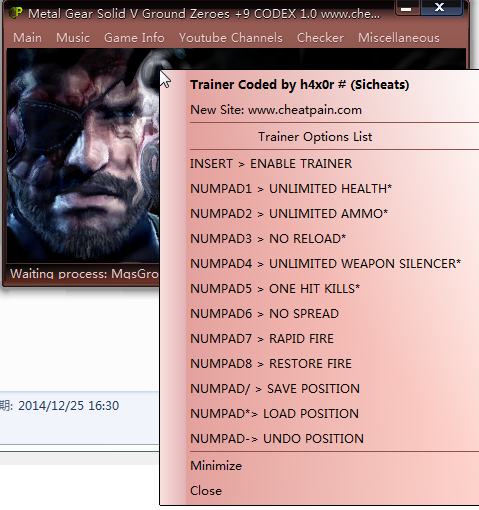 合金装备5原爆点九项修改器其实作为同名游戏《合金装备5原爆点》的最新修改工具,这回就做出相当大的改变,特别是在功能上有了很大的突破,其中就有无限武器耐久、武器无扩散、快速开火等九项非常不一样的功能免费使用!想要体验的就赶紧来这里下载吧!