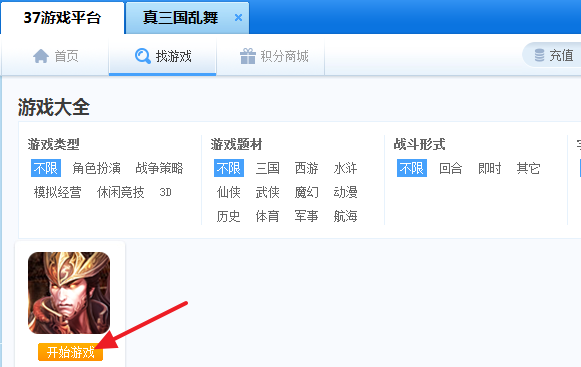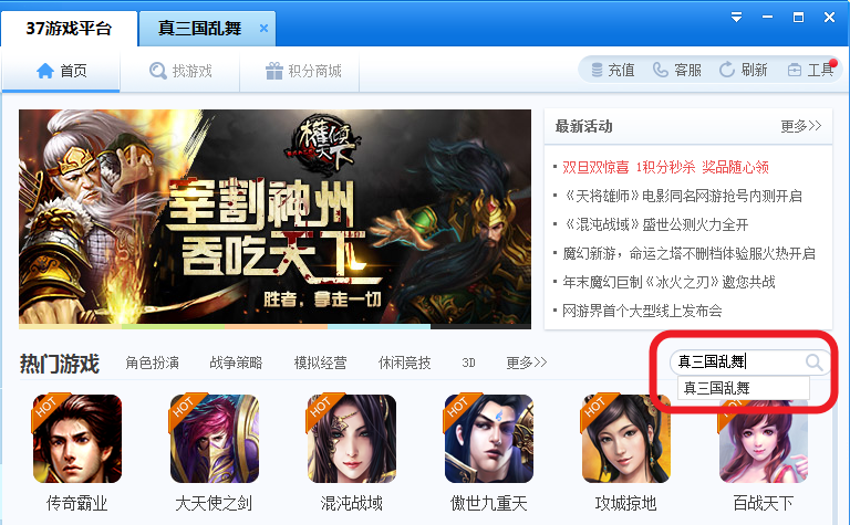 如默认没有打开,则可以在首页搜索“真三国乱舞”