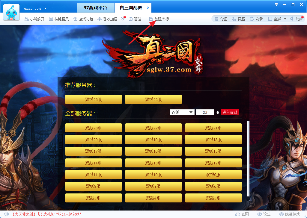 3、打开后可以点击【创建图标】,软件将自动在桌面创建真三国乱舞图标文件,下次直接双击打开图标即可
