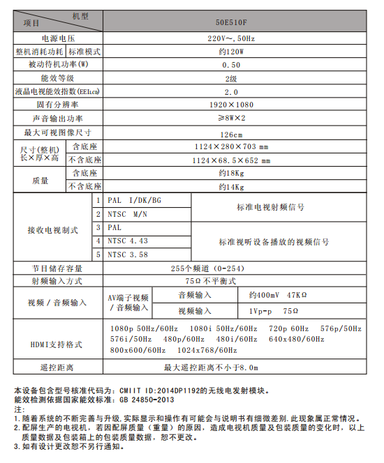 创维50E510F参数