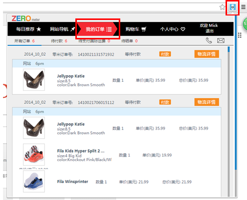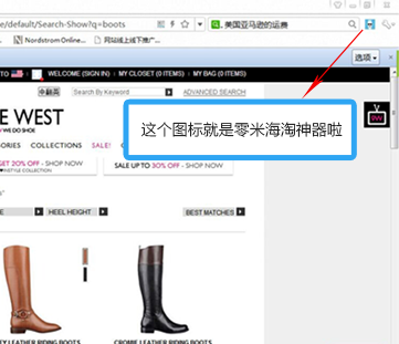 5.1 打开零米海淘神器,点击浏览器右上角的零米海淘神器图标。