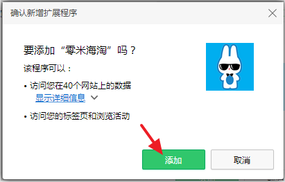 将插件拖动到浏览器任意空白地方,提示安装,点击【添加】即可