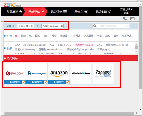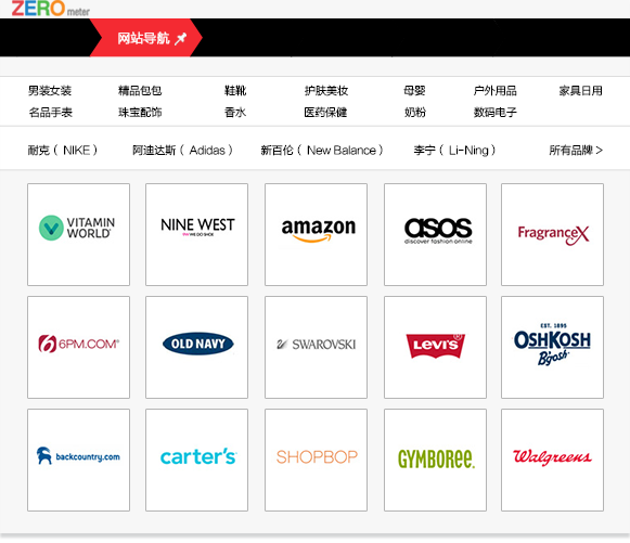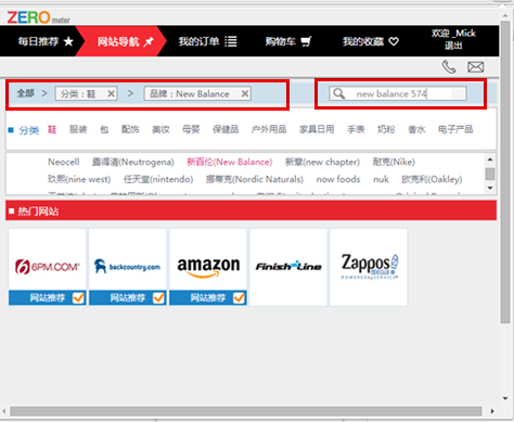 3.1 零米海淘神器提供了商品品牌检索功能,您可以点击商品类别和品牌检索出你需要的商品所在的网站网页。