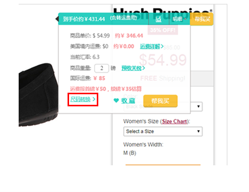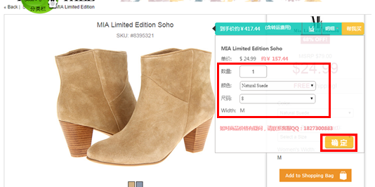 4.1 零米海淘神器有"帮我买"功能,您只需要点开插件的"帮我买",输入购买数量并选择颜色等信息后点击"确定"按钮,商品会自动加入插件的购物车,您在通过插件付款后就只需要等着商品到手啦。