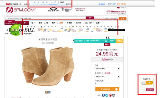 零米海淘神器对我们所支持的所有网站都提供了"导航栏翻译"、"全网翻译"和划词翻译功能,您可以方便 快捷的浏览网页搜索你需要的商品。