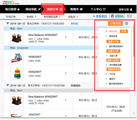 5、零米海淘神器提供了方便的订单追踪功能,让你能够方便查看您购买商品的状态,全程物流追踪,让您一次下单就只需坐等商品到手。