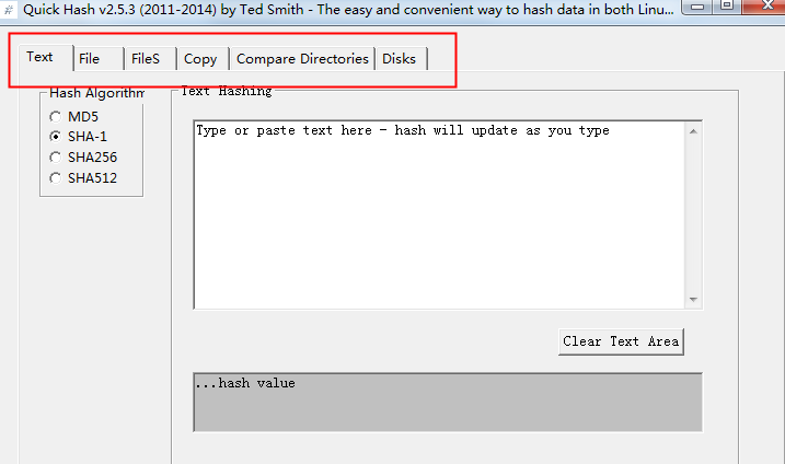 Quick Hash是一款用可以快速检验哈希值的小工具。确保文件不被篡改,支持字符串和文件的哈希值计算。目前可以计算的哈希值类型包括:MD5、SHA1、CRC32,有需要的用户可以下载使用。
