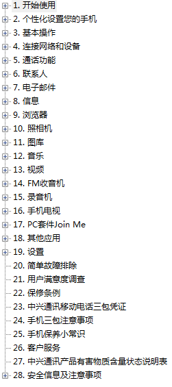 中兴ZTE U930使用说明书目录
