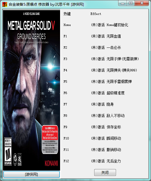 合金装备5原爆点十二项修改器是一款绿色免费的由游侠网为《合金装备5:原爆点》制作的一款修改器。该修改器包含无限血、一击必杀、无限子弹等十二项功能,十分给力!欢迎有需要的玩家下载使用!