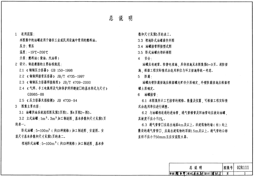 本节内容小编为大家带来的是pdf格式免费版02R111小型立(卧式)油罐图集高清图集(简称02r111图集),如果你正好需要一份这样的有需要的“02r111图集免费下载”内容,那就赶紧点击本文下方的下载地址进行查阅把!