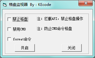 格盘监视器是一款绿色小巧的格盘拦截工具。其主要功能是防止系统被一些恶意程序或代码偷偷格盘;如果你经常使用一些辅助外挂程序,遇到一些恶意的程序,它会偷偷将你电脑磁盘格式化。为了有效防止这种情况发生,你可以使用这款格盘监视器,再牛逼的木马也格不掉你的硬盘。