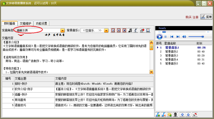 4、背景音乐可以自由更换、让朗读效果更具特色。