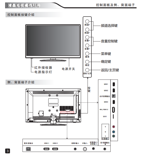控制面板按键及侧、背面端子介绍………………………………………………3