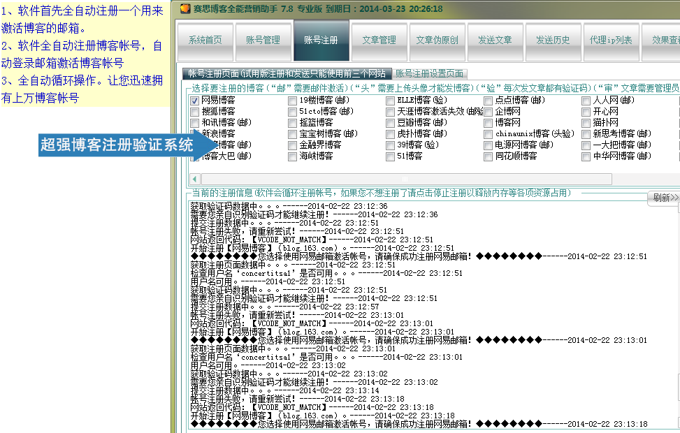 1.软件辅助您注册各大博客账号。
