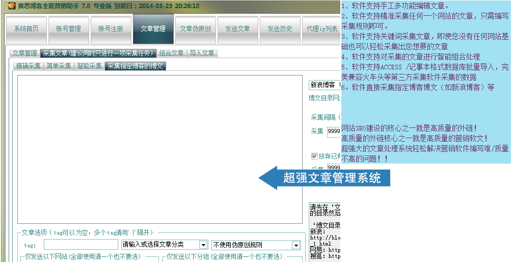赛思博客全能营销助手功能: