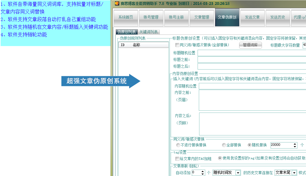 3、超强文章伪原创系统(支持多少方式伪原创)
