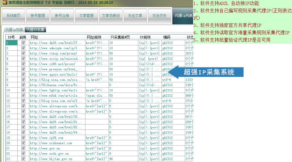 4、超强智能IP 系统(支持ADSL/代理IP)