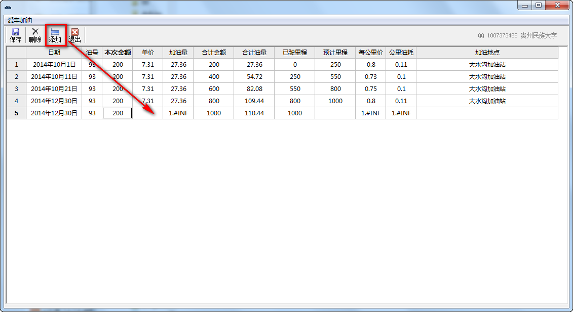 加油量、合计金额、合计油量、每公里价、每公里油耗不用填,会自动计算。