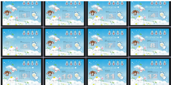 2015年蓝色卡通日历全套,psd素材免费下载,2015年台历psd模板,蓝色,可爱,卡通。
