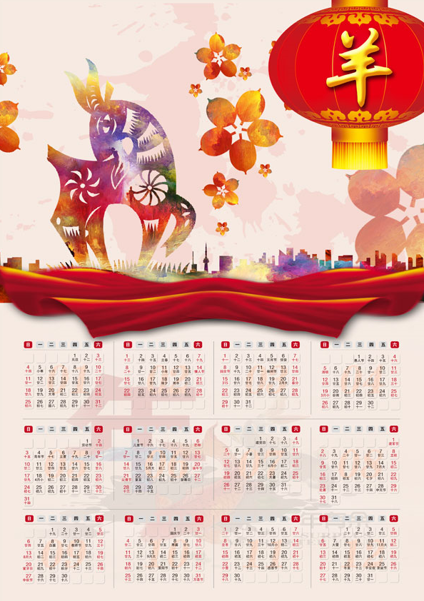 2015羊年精美挂历模板,2015年挂历,psd素材免费下载。