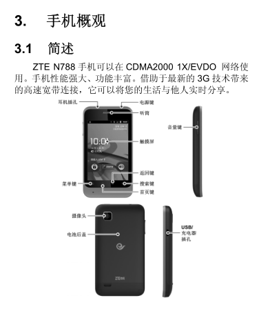 中兴ZTE N788是一款3.5英寸3G智能手机,Android OS 2.3操作系统,单核处理器,后置320万像素摄像头。以下文档是中兴ZTE N788使用说明书,有需要的朋友可立即下载此文档。