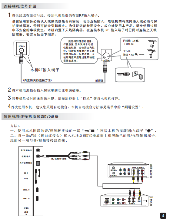 电视基本功能、电视产品特性提示、开机与关机……………………………… 8