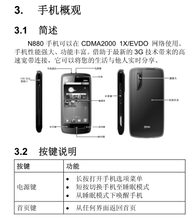中兴ZTE N880使用说明书目录