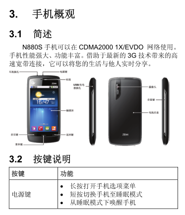 中兴ZTE N880S使用说明书
