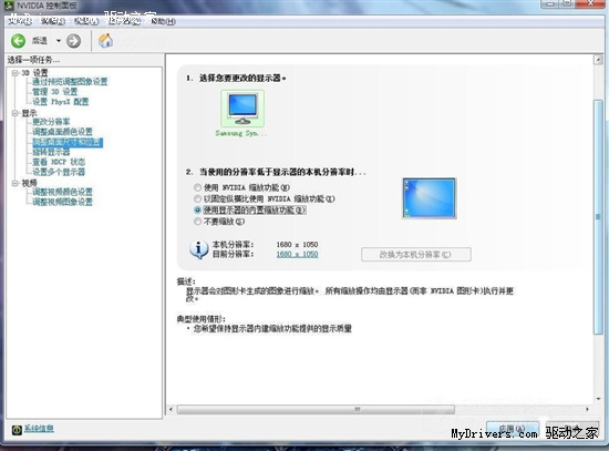 nvidia控制面板主要功能是调节显卡。大多数推荐默认设置,除非看视频或者玩游戏图像显示有问题才设置。其中有一个比较重要“调整桌面尺寸和位置”选择缩放模式 ,选全屏,不然玩游戏不是全屏。