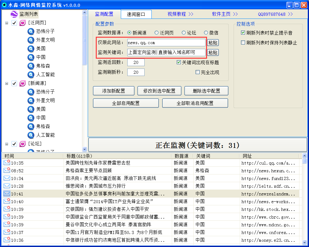 水淼网络舆情监控系统使用说明: