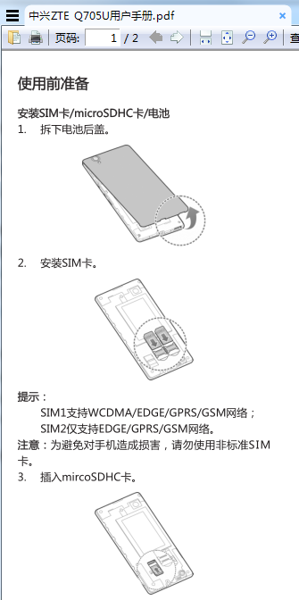 中兴ZTE Q705U是一款5.7英寸3G智能手机,Android OS 4.2操作系统,四核处理器,前后双摄像头,机身颜色为白色,支持GPS导航,蓝牙。以下文档是中兴ZTE Q705U使用说明书,有需要的朋友可立即下载此文档。