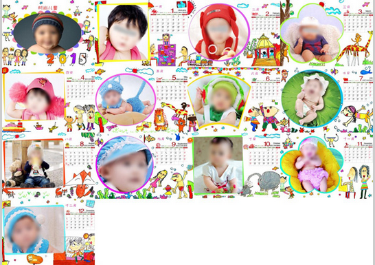 2015台历模板,2015年儿童台历模板,2015宝宝台历模板,1-12月全套模板,psd文件免费下载。