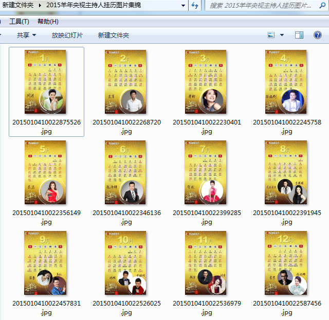 今天小编和大家分享的是一套2015羊年挂历,具体为2015羊年央视主持人挂历图片集锦,和其他挂历大不相同,因为这套2015央视主持人挂历当中包含了众多央视名嘴,希望大家会喜欢这套央视2015年挂历,有需要的朋友可立即下载此文档。
