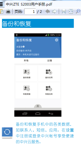 中兴ZTE S2003是一款5英寸4G智能手机,Android OS 4.4操作系统,四核处理器,前后双摄像头,机身颜色为黑色,支持OTG,DLNA,红外遥控,WLAN热点,蓝牙4.0。以下文档是中兴ZTE S2003使用说明书,有需要的朋友可立即下载此文档。