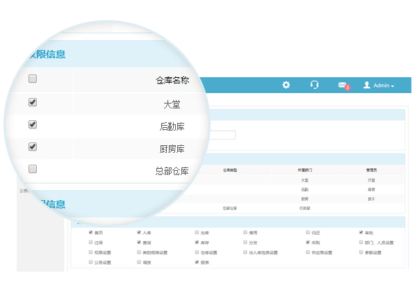R2能够满足不同行业、不同规模、不同管理架构的用户需求,因为R2可以针对每一个管理员(同一个企业下可以新增多个管理员账号,通过各自邮箱登陆)进行不同的权限设置,能够按业务功能、仓库、物品规格、单位部门等进行任意交叉权限设置,用户角色能涵盖“领导、采购员、库存管理员、领用者等”。在权限设置中,也可以随时咨询R2在线客服协助用户进行账户新增和权限授权。